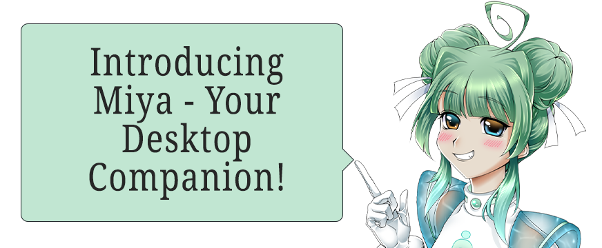 Miya is the all-in-one software that helps you manage everything from your schedule to your emotions! Her cute and charming personality will brighten even the gloomiest of days. You'll find yourself falling in love with her and her silly antics from the second you open her up, and with our new highly advanced and personalized Companion Mode, Miya can fall in love with you too! (Note: To use this mode, you must allow her to learn everything about you.)